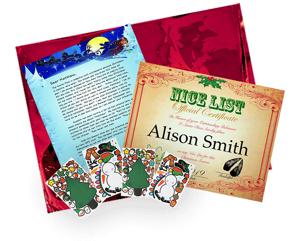 • The Deluxe Letter Package adds festive extras like a Nice List certificate, letter from Mrs. Claus, stickers, and Christmas game board.